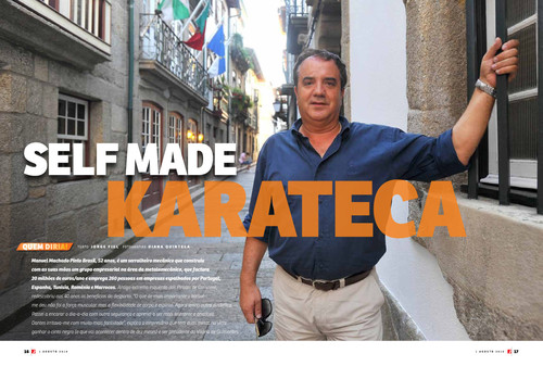 Manuel Machado Pinto Brasil, 52 anos, é um serralheiro mecânico que construiu com as suas mãos um grupo empresarial na área da metalomecânica, que factura 20 milhões de euros/ano e emprega 260 pessoas em empresas espalhados por Portugal, Espanha, Tunísia, Roménia e Marrocos. Antigo extremo esquerdo dos Piratas de Creixomil, redescobriu aos 40 anos os benefícios do desporto. “O que de mais importante o karaté me deu não foi a força muscular mas a flexibilidade de corpo e espírito. Agora tenho outra dinâmica. Passei a encarar o dia-a-dia com outra segurança e aprendi a ser mais tolerante e analítico. Dantes irritava-me com muito mais facilidade”, explica o empresário que tem duas metas na vida: ganhar o cinto negro (o que vai acontecer dentro de dez meses) e ser presidente do Vitória de Guimarães