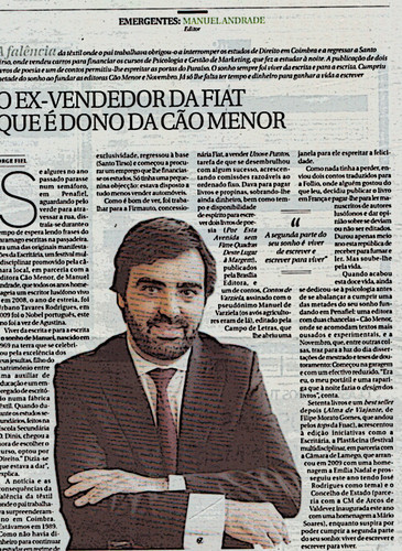 Quando acabou esta doce vida, ainda se dedicou-se à psicologia antes de se abalançar a cumprir uma das metades do seu sonhe fundando em Penafiel uma editora com duas chancelas - Cão Menor, onde se acomodam textos mais ousados e experimentais, e a Novembro, que, entre outras coisas, trás para a luz do dia dissertações de mestrado e teses de doutoramento: Começou na garagem e com um efectivo reduzido. “Era eu, o meu portátil e uma rapariga que à noite fazia o design dos livros”, conta.