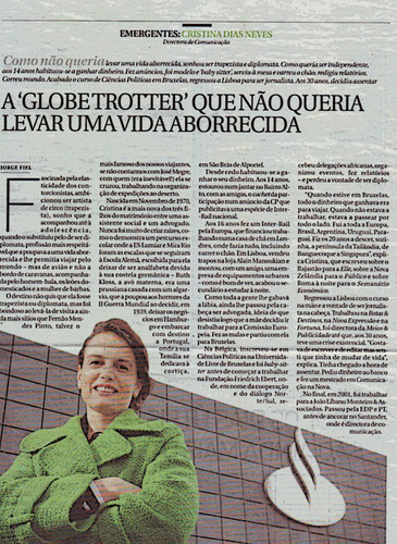 “Quando estive em Bruxelas, todo o dinheiro que ganhava era para viajar. Quando não estava a trabalhar, estava a passear por todo o lado. Fui a toda a Europa, Brasil, Argentina, Uruguai, Paraguai. Fiz 20 anos a descer, sozinha a Península da Tailândia, de Banguecoque a Singapura”, explica Cristina, que escreveu sobre o Rajastão para a Elle, sobre a Nova Zelândia para o Público, e sobre a Roma à noite para o Semanário Económico.